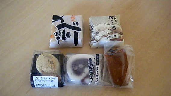 うぐいす餅、おいもやさん、という名の5種類の和菓子を1個ずつ試食してみました。
